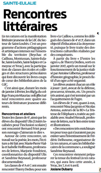 Mars 2015 - Un article au sujet des élèves du collège dans SUD-OUEST (copie 1)